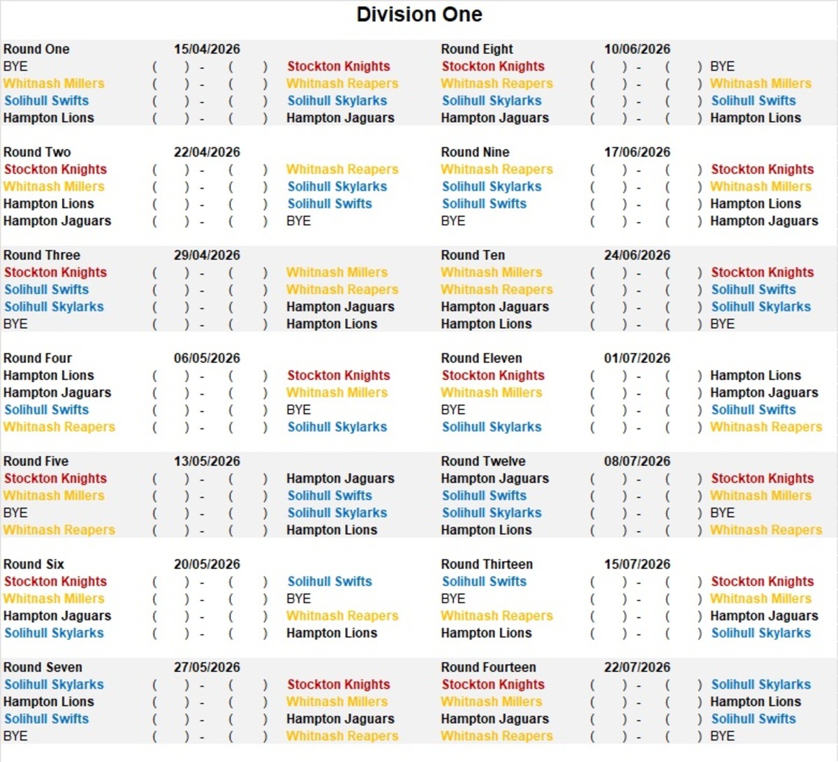 Jenny & Ben keep the calendar, website & scores up to date.